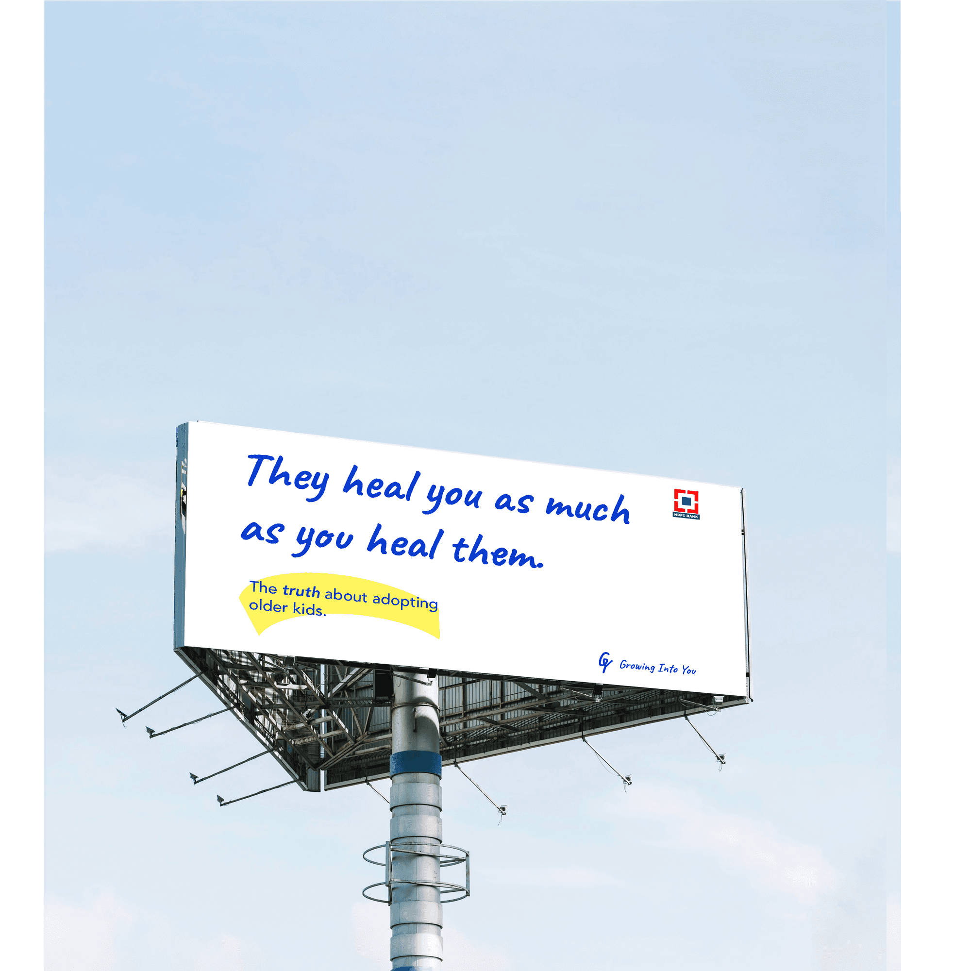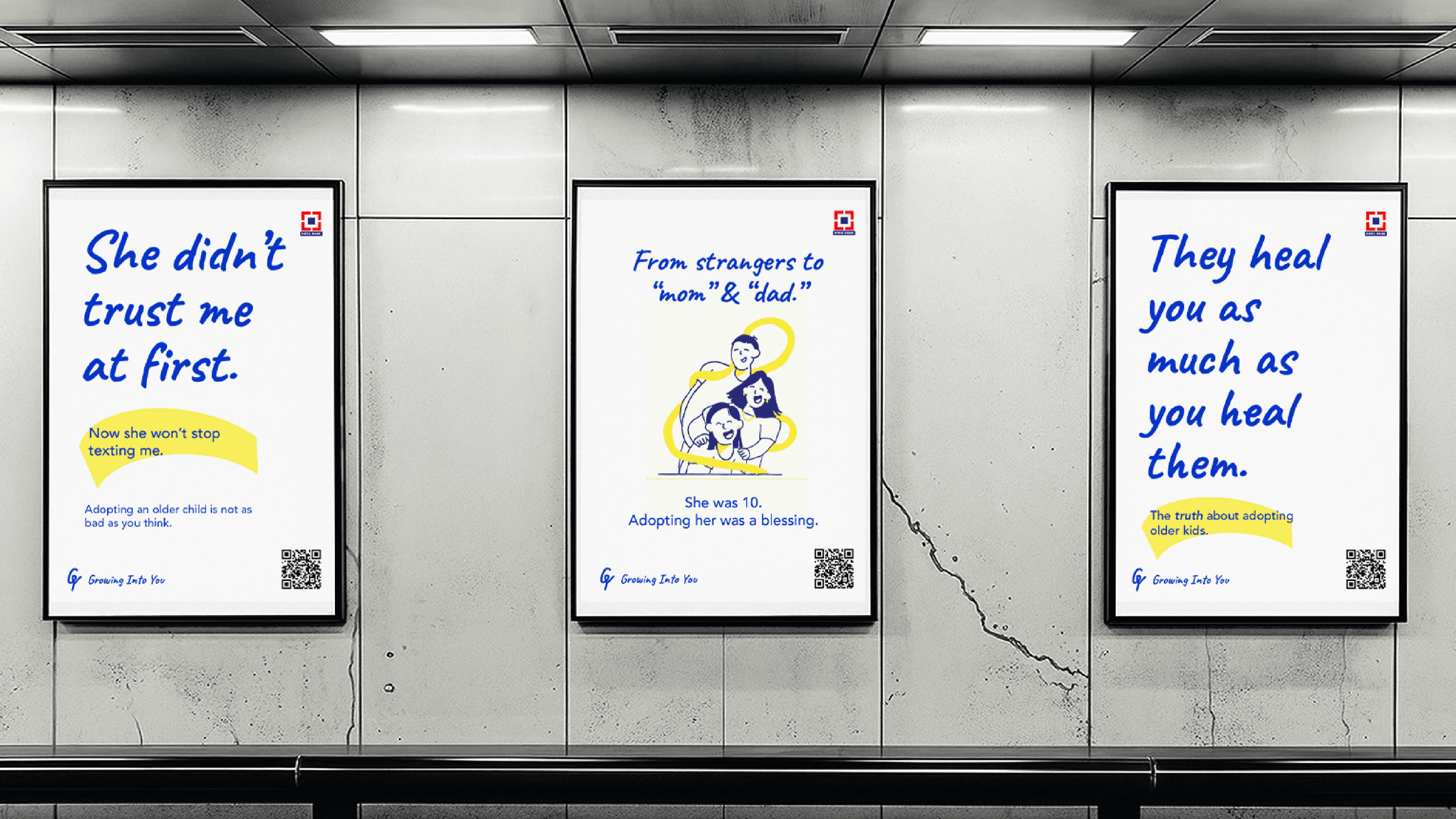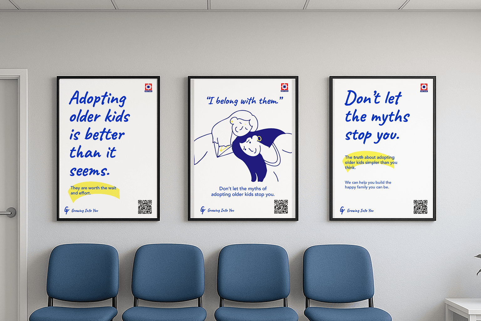 The campaign uses posters to spark awareness and guide PAPs to a website hub of stories, resources, and counselling, helping them move from curiosity to confidence in adopting older children.