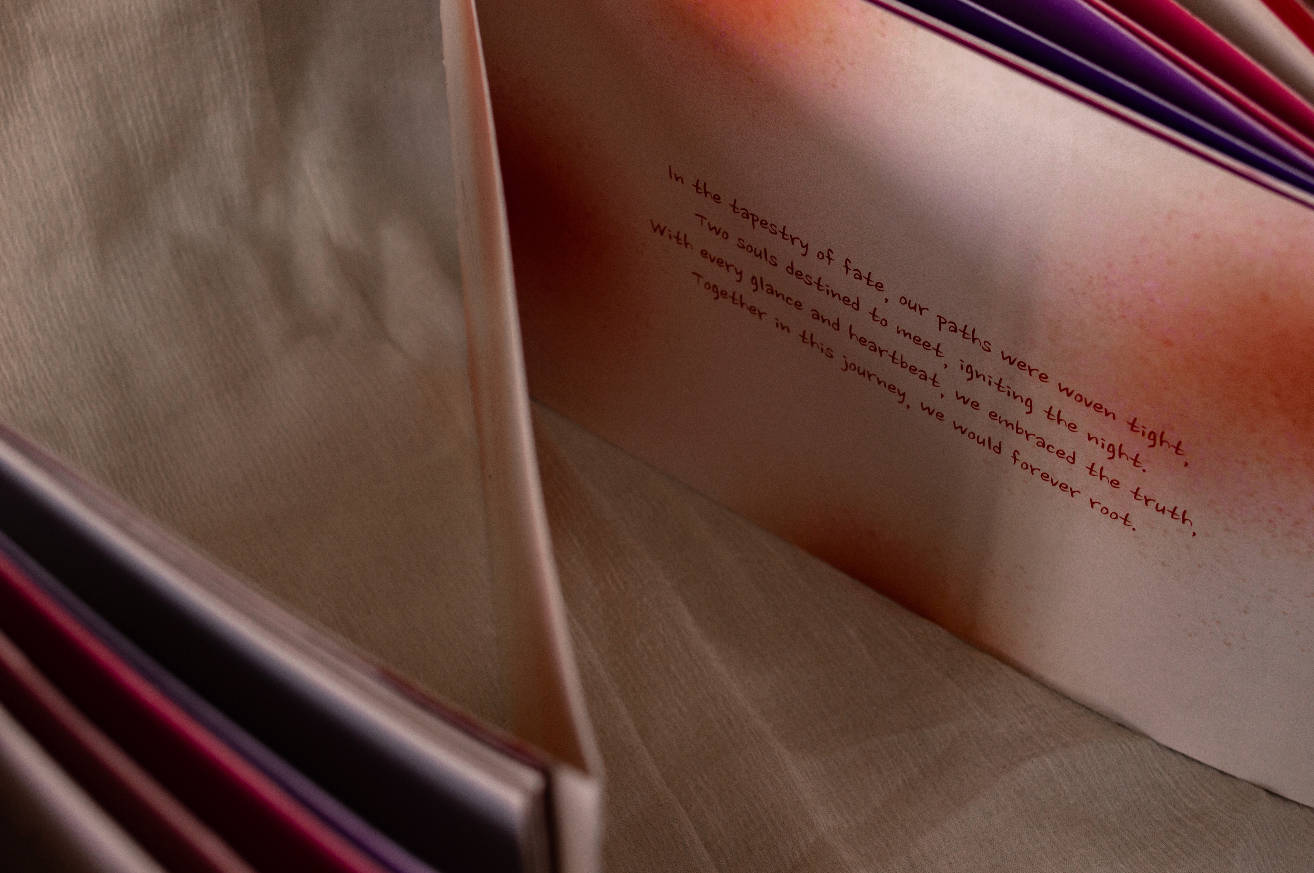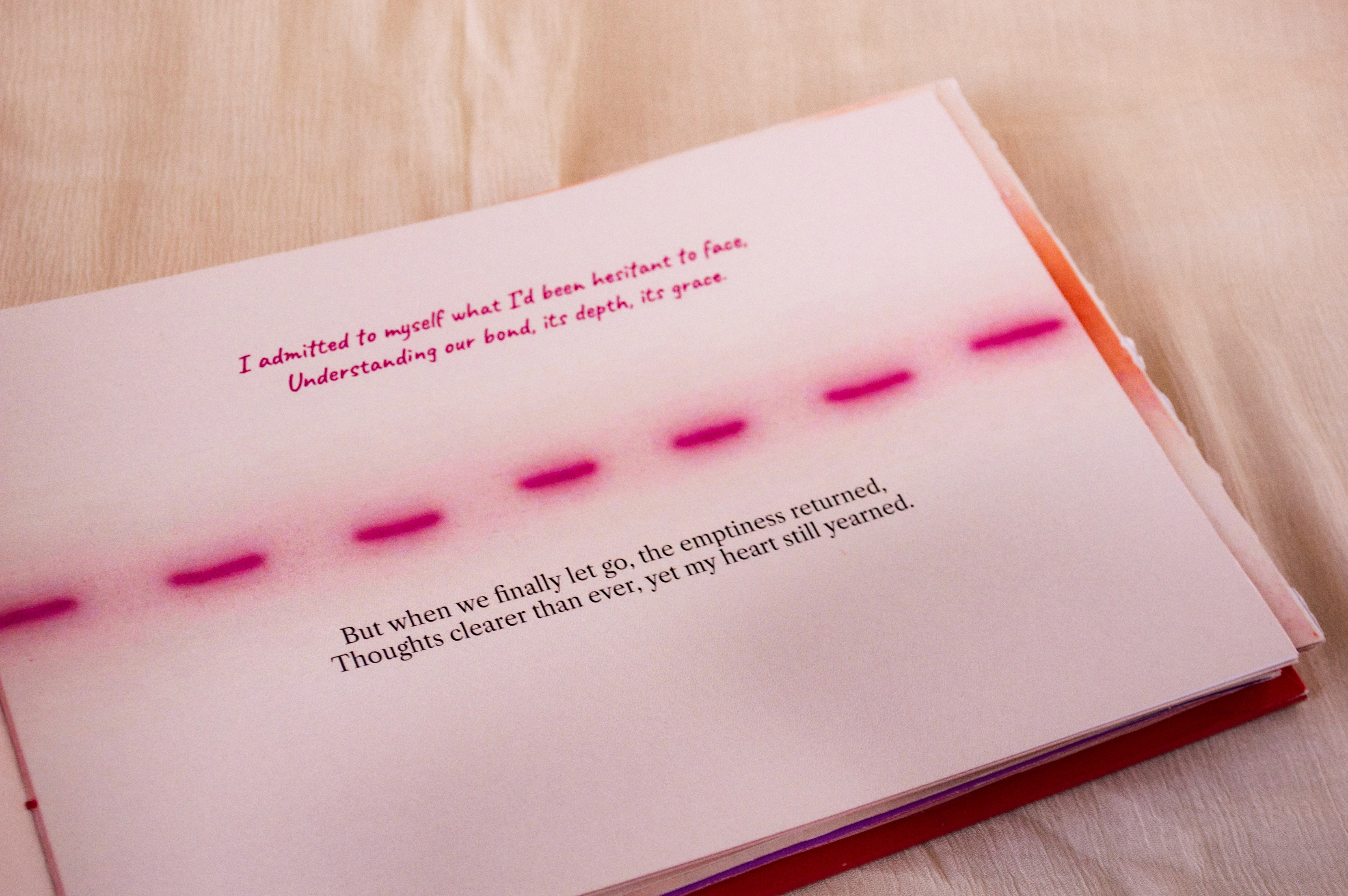 Ties Beyond Time is a conceptual book that tells a love story through two perspectives. It reimagines the book as more than a container of words, but as an emotional, tactile experience.